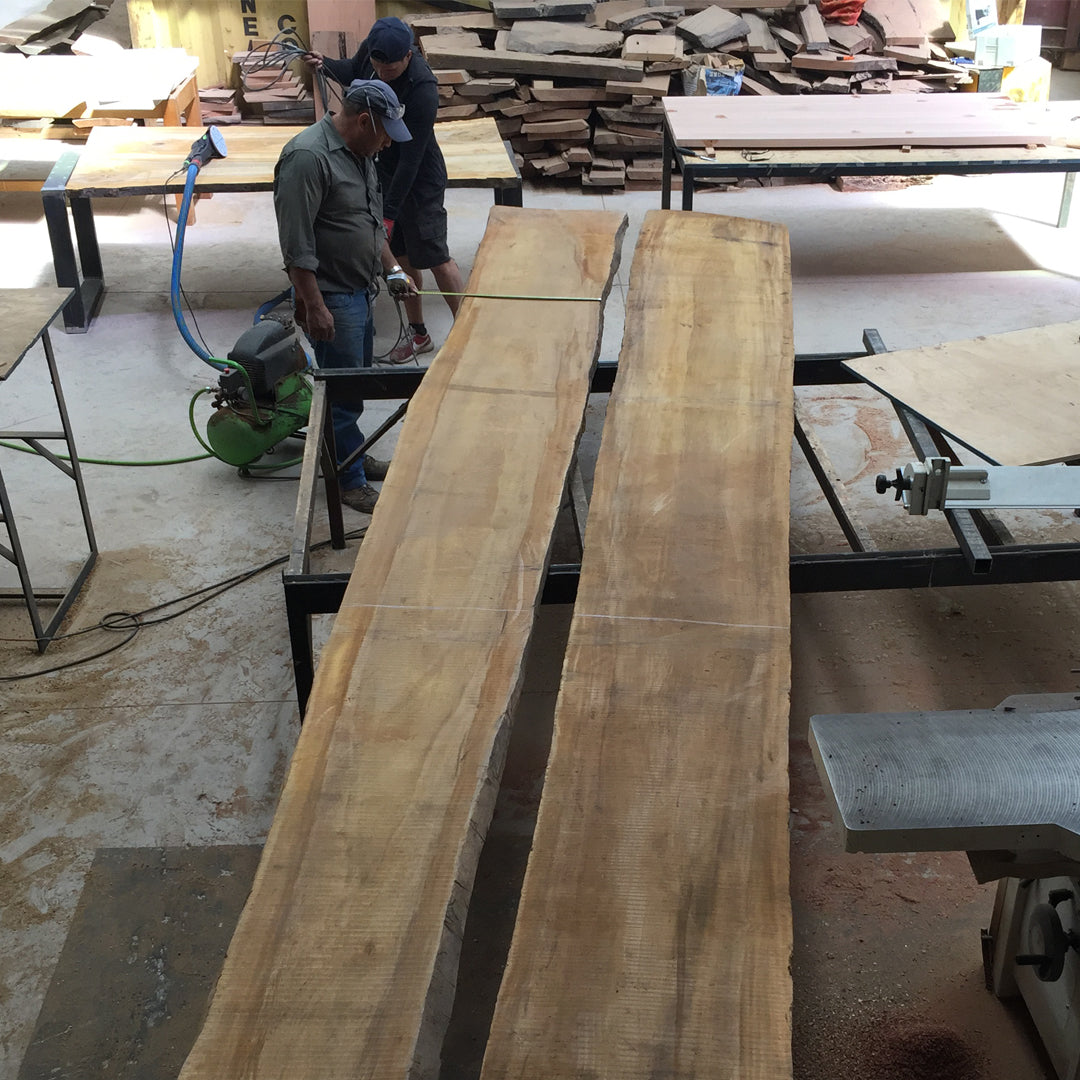 Over time we perfected our capabilities to refloat logs and process them in the sawmill we set up in the south, where natural drying subsequently begins. And now with the best dry raw materials available, the focus shifted to consolidating our furniture workshop in Santiago, with a strong human team and good machinery.