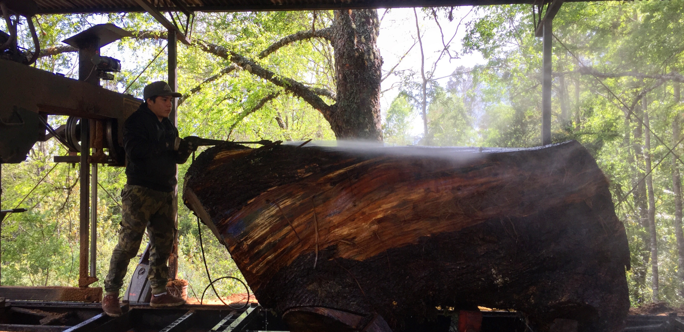 It is a stage of surprises and magic. Aged trunks without further external information, show their identity with each cut made, showing their particular grain on each plank, the colors and aromas of the sawdust that indicate the rescued species.